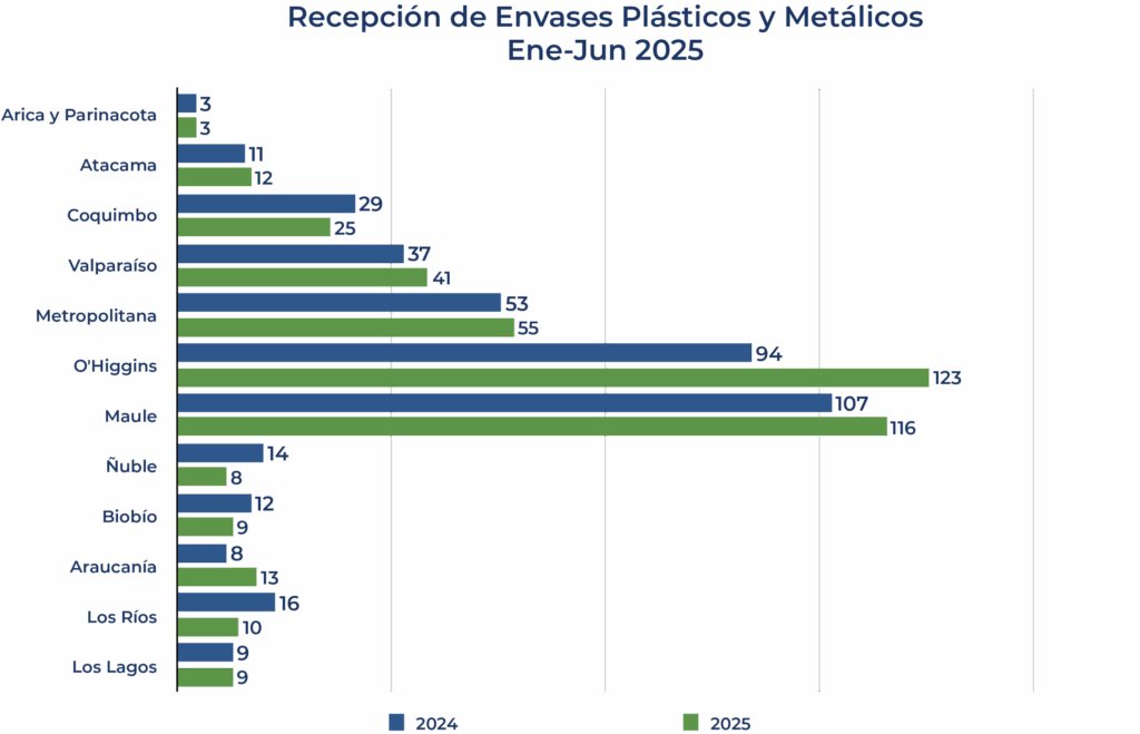 En materia de reciclaje, los resultados son aún más alentadores: durante el semestre se reciclaron 527 toneladas de envases, lo que equivale al 61% de la meta anual establecida por el Ministerio del Medio Ambiente. De este total, un 60% fue gestionado a través del Sistema de Gestión y un 40% por el Programa Voluntario, reflejando la consolidación del nuevo modelo.