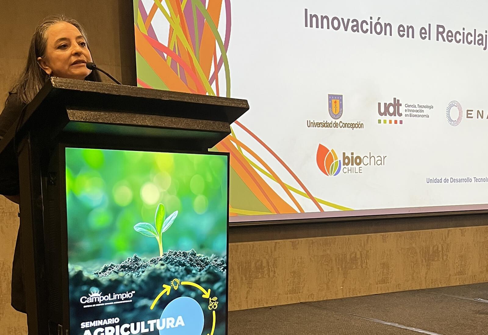 En el marco del seminario “Agricultura Circular, camino hacia la sostenibilidad”, organizado por CampoLimpio el miércoles recién pasado, la investigadora Dra. Cristina Segura, de la Unidad de Desarrollo Tecnológico (UDT) de la Universidad de Concepción, presentó la charla “Innovación en el reciclaje agrícola: Pirólisis”, donde abordó nuevas alternativas para valorizar residuos plásticos de difícil reciclaje mecánico, en particular aquellos provenientes del sector agrícola.