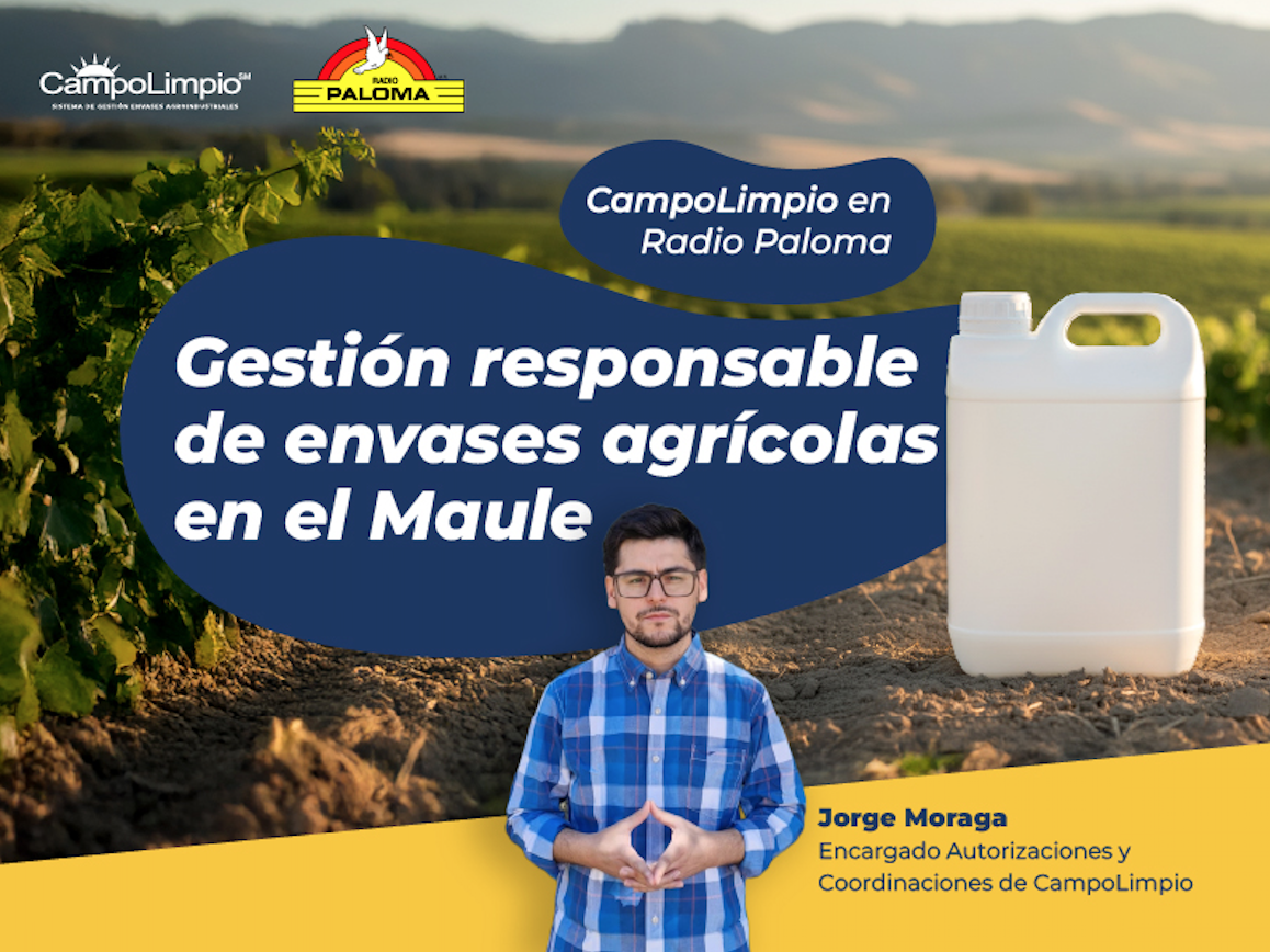 Radio Paloma, de la Región del Maule, tuvo como invitado a Jorge Moraga, Encargado de Autorizaciones y Coordinaciones de CampoLimpio, para profundizar en el trabajo que desarrolla el único sistema de gestión autorizado en Chile para la recuperación y reciclaje de envases vacíos de uso agrícola.
